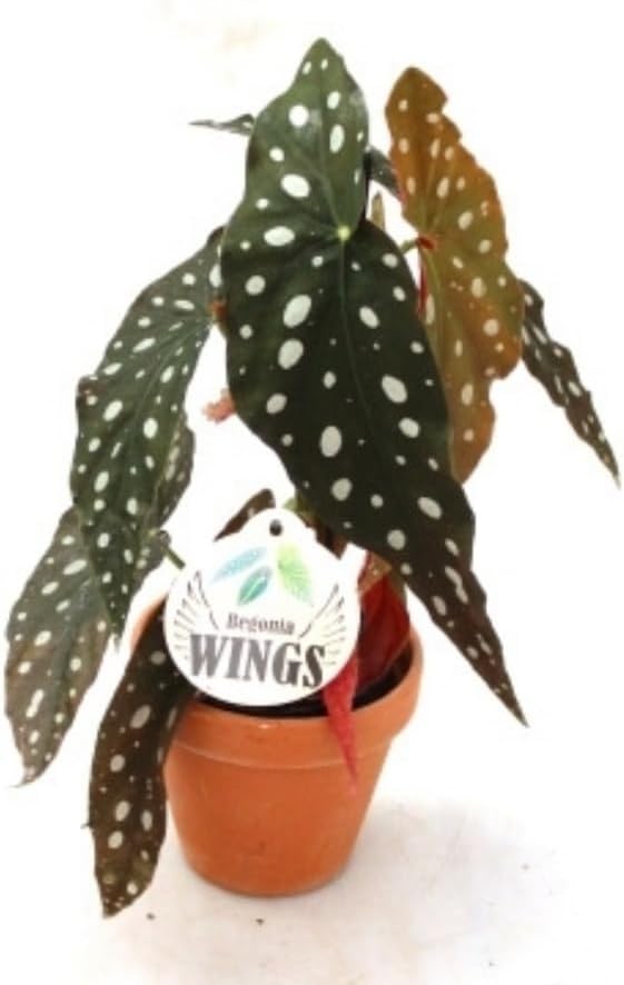 Begonia Maculata, 25-35 cm. Planta tropical con hojas verdes y manchas blancas, elegante y fácil de cuidar. Segura Garden.