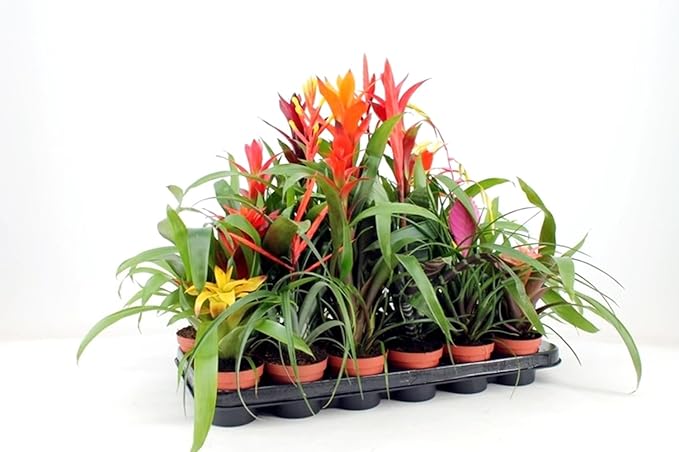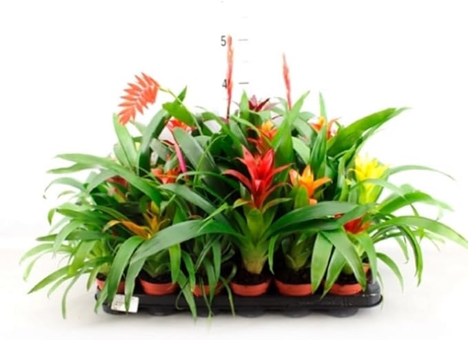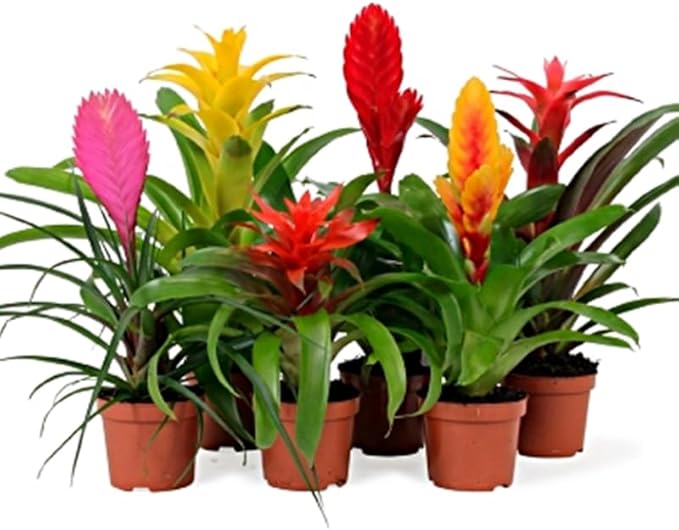 Pack de 6 Plantas naturales Bromelia Mix, 30-40 cm. Variadas. Plantas de interior coloridas, purifican el aire, fáciles de cuidar. Añade un toque tropical y elegante a tu hogar. Segura Garden