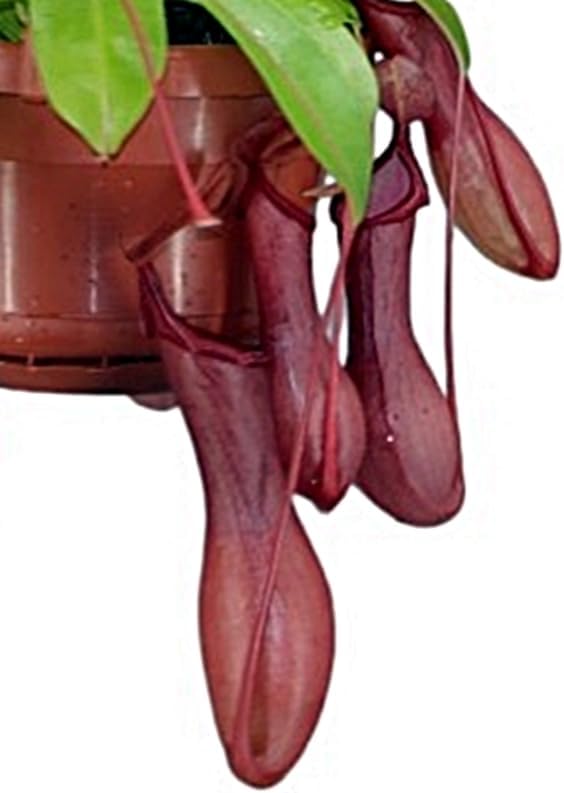 Planta natural 35 – 40 cm Nepenthes alata es una planta carnívora trepadora con jarras colgantes que atrapan insectos. Prefiere suelos húmedos, luz indirecta y temperaturas cálidas.